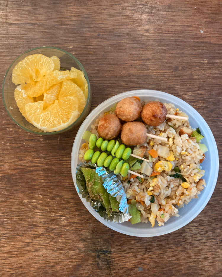 おかずの材料がなかったので、ありものをいっぱい入れてチャーハンにしました。