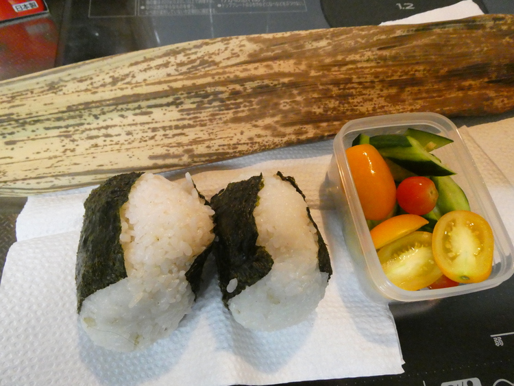 毎日暑いので、梅干を入れた塩結びです。