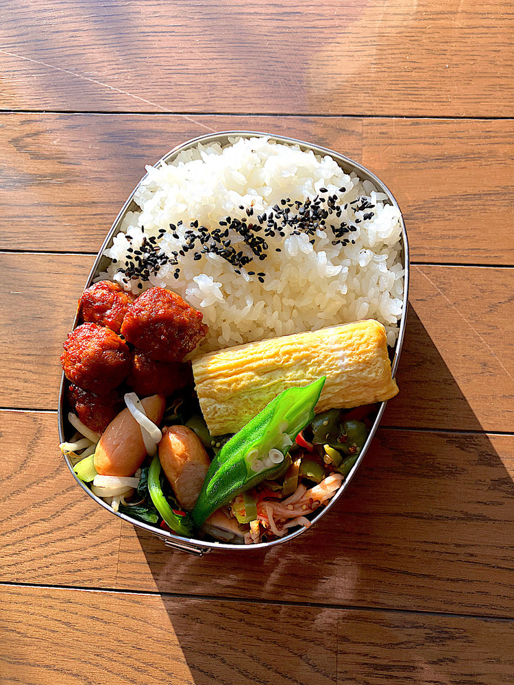 週4で自分のお弁当を作っています♪( ´▽`) 作り置きや夕食の残りなど有り合わせを詰める事も多いですが、自分の好きなおかずや野菜を あれこれ考えるのが好きです♡