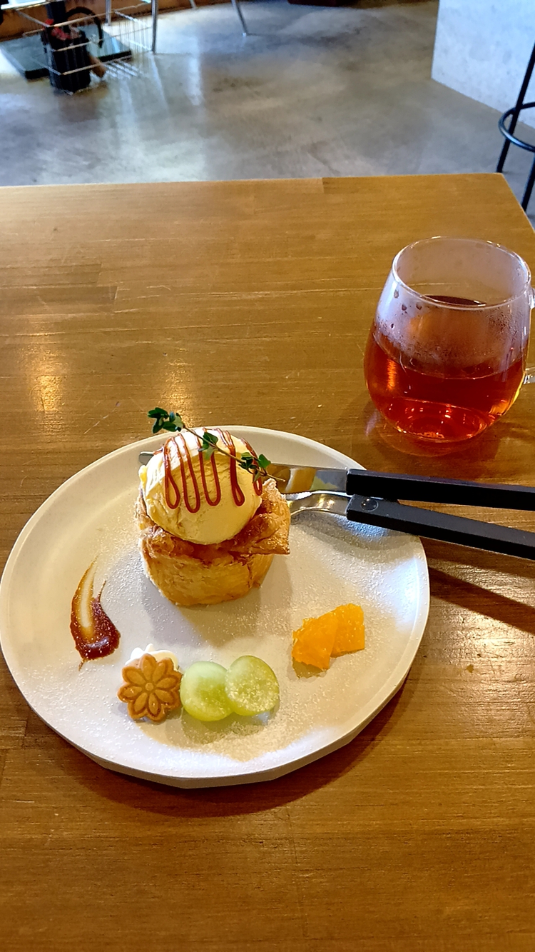 先日食べた、カフェでのアップルパイ。温めたアップルパイにバニラアイスが載り、溶けてソース代わりとなり、美味しかったです🍎